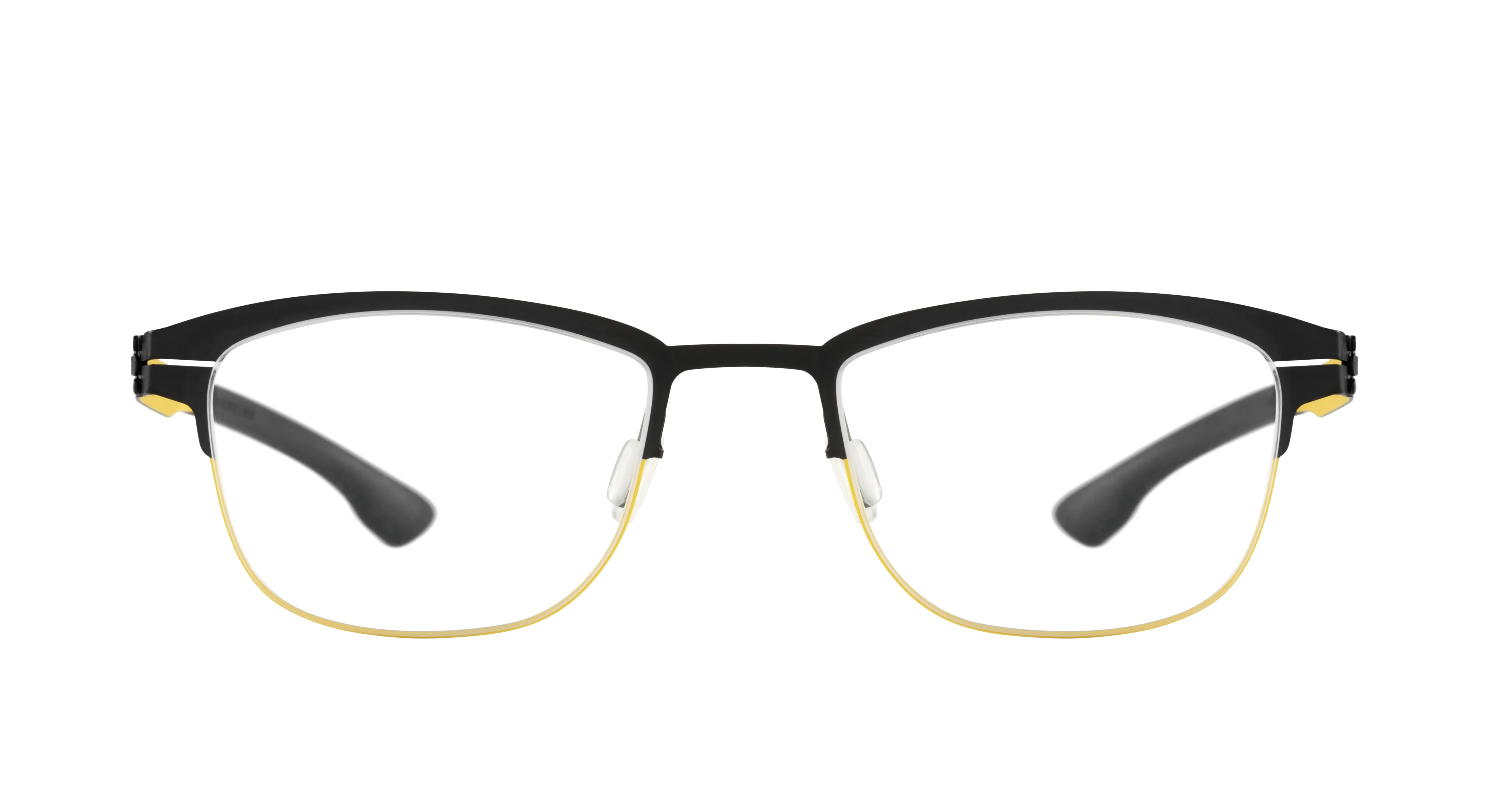 - Browline silhouette with a soft square lens shape